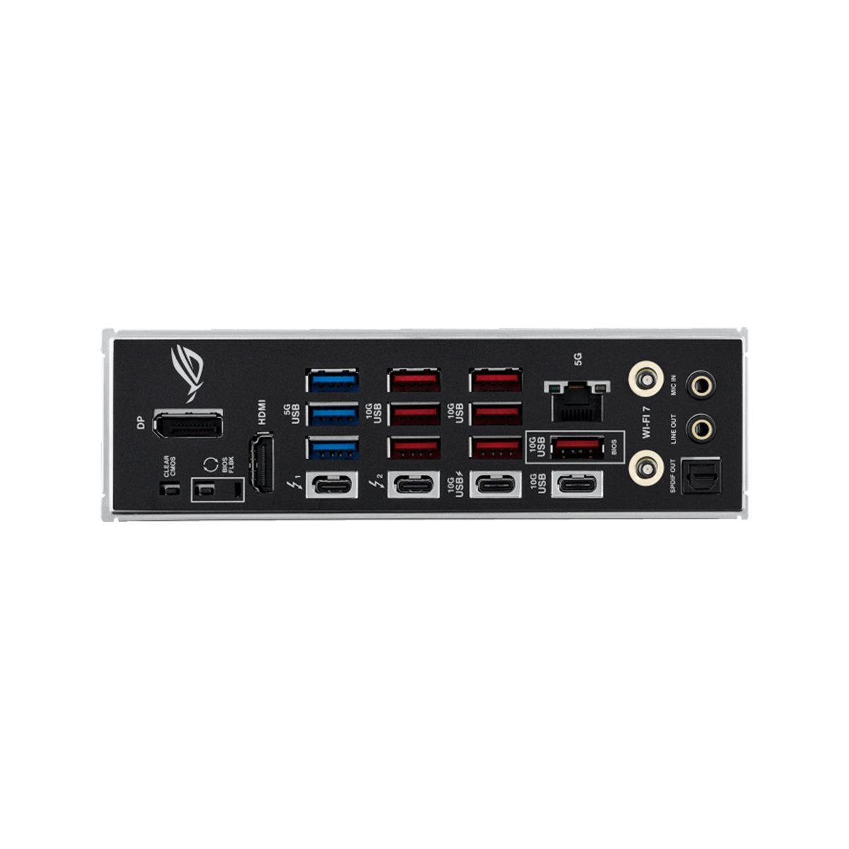 2 x Thunderbolt? 4 (2 x USB Type-C?) 9 x USB 10Gbps ports (7 x Type-A + 1 x USB Type-C? + 1 x USB Type-C? with up to 30W PD Fast-charge) 3 x USB 5Gbps ports (3 x Type-A) 1 x DisplayPort 1 x HDMI? port 1 x Wi-Fi Module 1 x Realtek 5Gb Ethernet 2 x Gold-plated audio jacks 1 x Optical S/PDIF out port 1 x BIOS FlashBack? button 1 x Clear CMOS button |